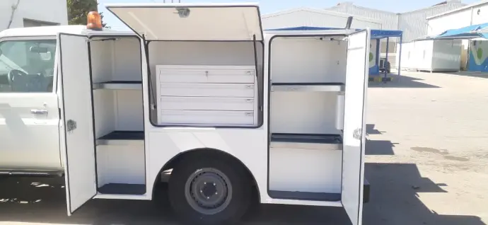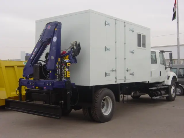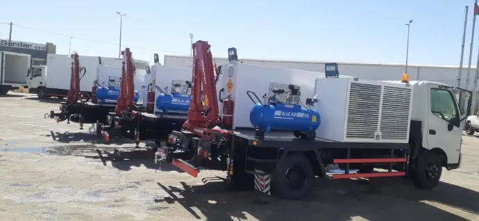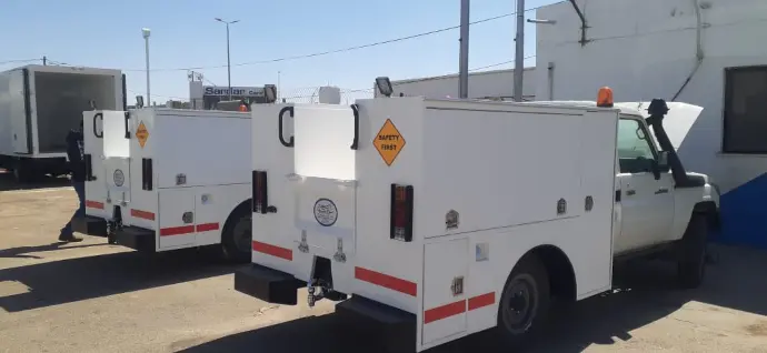Each mobile workshop is outfitted with essential tools and equipment such as welding machines, grinders, drills, power supplies, jacks, saws, comprehensive tool sets, lifting cranes, and lubrication systems—enabling efficient and effective operations directly at the job site.